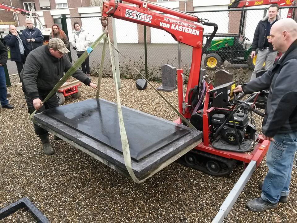Rockylift : Voordat de JOA-leden naar hotel Valuas in Venlo vertrokken waar de jaarvergadering plaats zou vinden, kreeg Jos van Kasteren de gelegenheid om zijn uitvinding Rockylift te demonstreren. Een korte wandeling door de buurt naar de showtuin waar enkele ontwerpen van het Venlose bedrijf worden gepresenteerd waar het apparaat klaar stond voor demonstratie. Samen met een collega liet de directeur van het gelijknamige natuursteenbedrijf uit Schijndel zien met welk gemak de kleine, compacte krachtpatser een grafmonument optilt en een stuk verderop weer neerlegt. De JOA-leden waren onder de indruk van de mogelijkheden van het apparaat. Vooral het feit dat ermee op de smalle paden tussen de grafmonumenten gemanoeuvreerd kan worden, werd positief gewaardeerd.